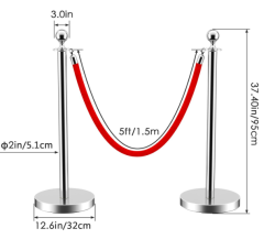 Red Velvet Stanchion RopeStanchion - SILVER:Red Velvet Stanchion Rope1Dropdown03272425_31593670000 Velvet Stanchion Rope, 5 Feet Crowd Control Stanchion Ropes Safety Barrier with Gold Plated Hk for Carpet Events Movie Theaters Grand Openings Hotels Party (Red